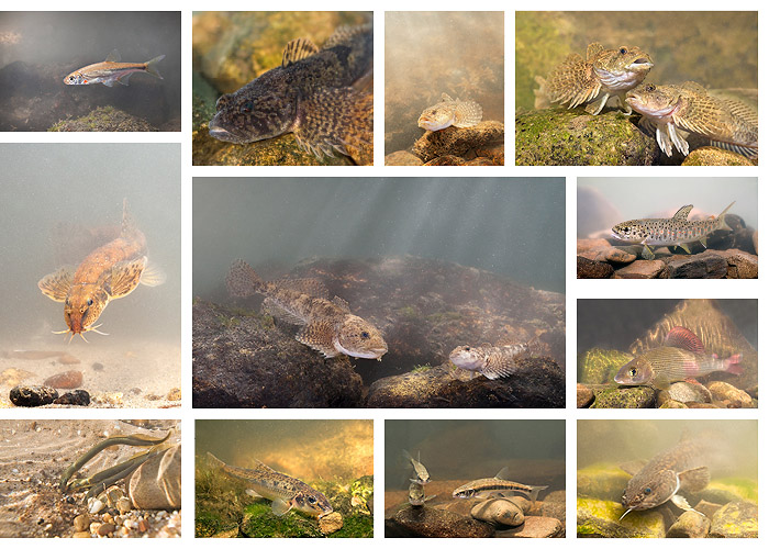 On the right you find a selection of fishes from Dutch streams and brooks. We have a large collection of all native Dutch fish. From bullhead to brook lamprey. We spend a lot of time on the ecology of species to come to a natural representation of our subjects. Over the years we build up a unique archive.