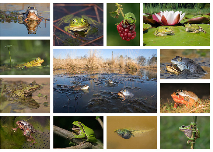On the right you find an overview of all native Dutch frogs: the common frog, moor frog, tree frog, pool frog, edible frog and marsh frog. We have high quality photo's of all species in our archive.